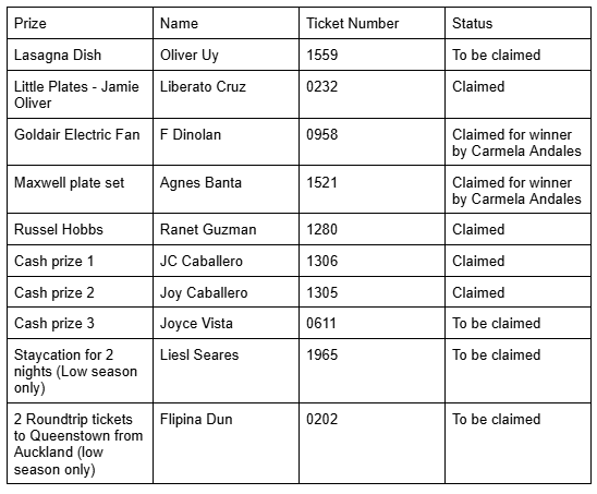 Sinulog 2026 Raffle Winners